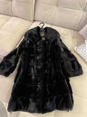 Продам красивую норковую шубу, цвет черный бриллиант, размер 42-44, длина до колена.