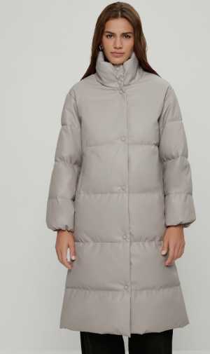 Новый пуховик/ пальто из искусственной кожи, в модели было указан цвет бежевый, но по факту это серый цвет, смотрится очень...