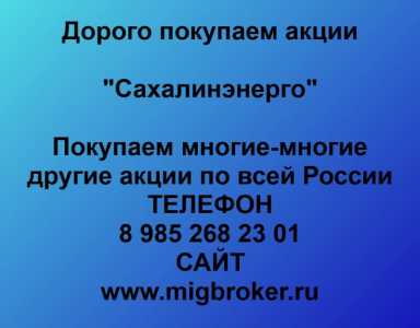 Покупаем акции Сахалинэнерго и любые другие акции по всей России Покупка акций Сахалинэнерго в любом городе У нас лучшая...